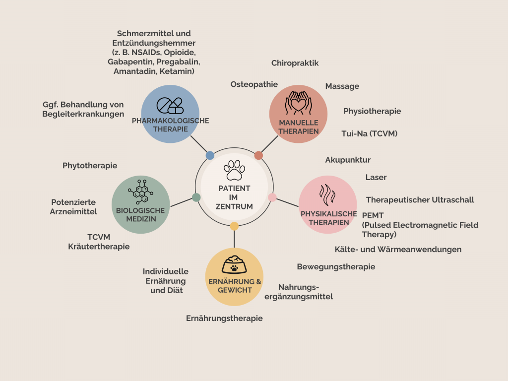 Im Rahmen des gesamten Therapieplans wird die Operation durch andere Modalitäten wie Schmerztherapie, Physiotherapie und Ernährungsmanagement unterstützt, um Deinen Hund langfristig bestmöglich zu begleiten.